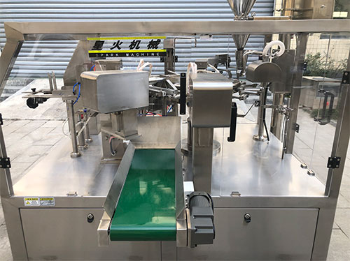 给袋式调料包装机械采用立式螺杆给料,工作原理简单,操作方便,工作时螺杆会根据控制信号旋转供料,称重传感器和称重控制器进行称重信号的处理,并输出重量数据显示及控制信号。调料粉末包装机一键启动即可实现自动上料、自动称重、自动下料、自动充填、自动封口、自动打印工作程序。