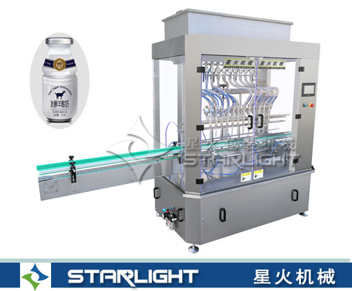十二头直流式液体灌装机-羊奶玻璃瓶灌装机是我公司自主研发的新型液体灌装机,主要适用于流动性较比较好的液体,如酱油醋、酒水饮料、饮用水、牛奶等,在食品、日化、化工、医药等行业广泛使用。 设备集光、电、气于一体,由PLC配合人机界面(触摸屏)控制,从进瓶、定位、灌装、出瓶等动作均全自动完成。